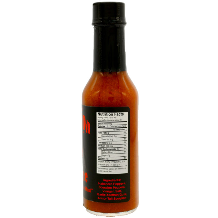 SKU: SP001W Categories: Extra Hot, Hot Sauce Tags: Armor Tail Scorpion, BBQ Essential, Capsaicin, Culinary Adventure, Daring Flavors, EatHot.com, Exotic Hot Sauce, Extreme Heat, Gourmet Sauce, Made in the USA, Pepper Enthusiast, Scorpion Meat, Scoville, Unique Flavor